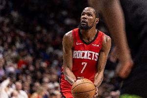 上半场比赛,杜兰特手感不太好,他出战18分45秒,投篮11中3,三分3中0,罚球2中1,得到7分2篮板4助攻1盖帽。