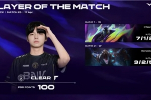 体育资讯4月17日讯 LCK第二赛段BFX以2-0横扫了KRX,Clear整个系列赛发挥出色,斩获BFX对阵KRX系列赛POM。