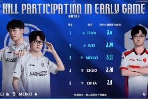 体育资讯4月19日讯 今日LPL第二赛段迎来TES对阵iG的比赛,赛前官方给出数据:赛段至今场均对线参与击杀Tian高居第一,IG野辅位列二三!